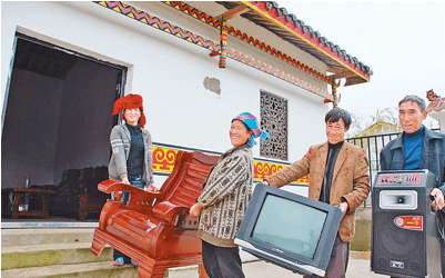 马依足乡马依足村马依足组白拉惹滔滔不绝地说:“前几年我家修的平房,在我们那里还是算好的了,但现在他们下边修建的‘千户彝寨’就更好了,那是几楼一底的,和大城市里面的房子一样,很高,又很漂亮。我都在这里打工了几个月了。而今在农村走在哪里,哪里的房子都漂漂亮亮的,还有沼气,房前屋后绿化,坝子都是打成水泥路的,进村入户路这些也是水泥路,农民家里电冰箱、电视机、洗衣机、DVD应有尽有,和单位上没有什么区别。