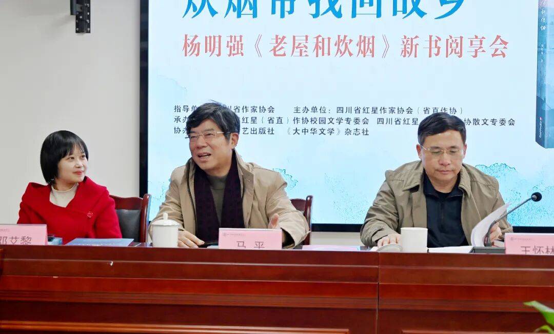2025年12月28日上午,四川省红星作家协会(四川省直作家协会)、四川文艺出版社主办,省直作协校园文学专委会、散文专委会承办的散文集《老屋和炊烟》新书阅享会,在四川省招生考试指导中心举行。省直作协主席王怀林主持阅享会,来自文学界、出版界、新闻界的多位嘉宾出席,共同探讨这部兼具文学性、思想性与影像美学特质的散文集。