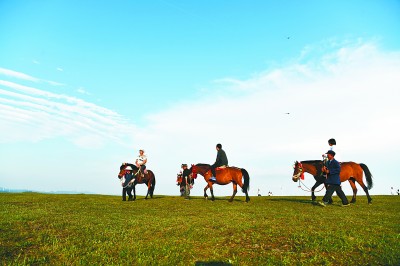 游客在贵州龙里大草原景区骑马观光。新华社发