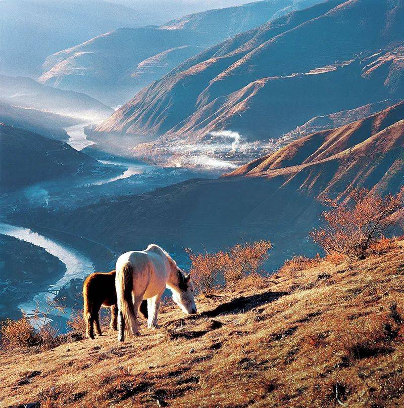 “天很蓝、云很低、草甸很宽、野花烂漫。羊在吃草、牛在溜达;有几只香猪在草地打滚,打着打着它们就长大了。但沃日河却永远也不会长大似的,像一条飘带在山谷里盘来盘去;细细的、弯弯的;躁动着,雨季变粗了,旱季又落下去,仿佛永远都长不胖。”