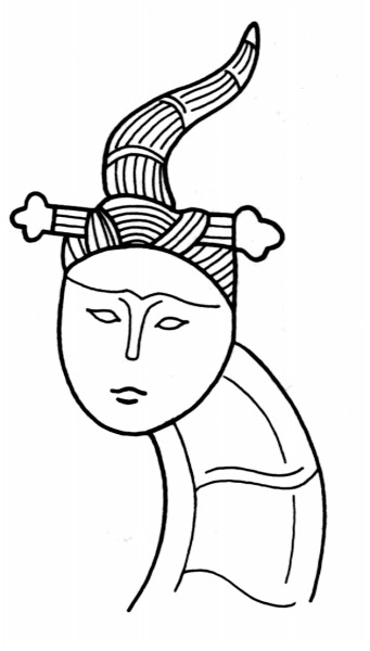 讲到这里,孙机拿出他的旧作《从历史中醒来》,翻到山东临沂西张官庄出土的汉画像石上的女神像(图1),头上清清楚楚地戴着这种发饰,“这样我们就可以确认无疑这是一种发饰,但是叫什么名字呢?这就需要到文献中去找答案。根据文献记载,这个物件是三子钗,又名三珠钗”。
