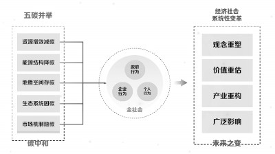 我认为,“五碳并举”实现碳中和会带来政府行为、企业行为和个人行为的根本变化,影响范围非常大。这场经济社会系统性变革,涉及观念重塑、价值重估、产业重构及广泛的社会经济和生活影响。