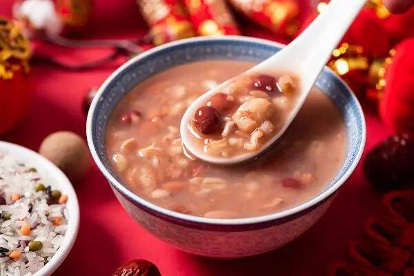 忍看星霜万点,皆作晨炊烟火,八宝暖柔肠。佛粥映慈色,腊雪沁寒香。