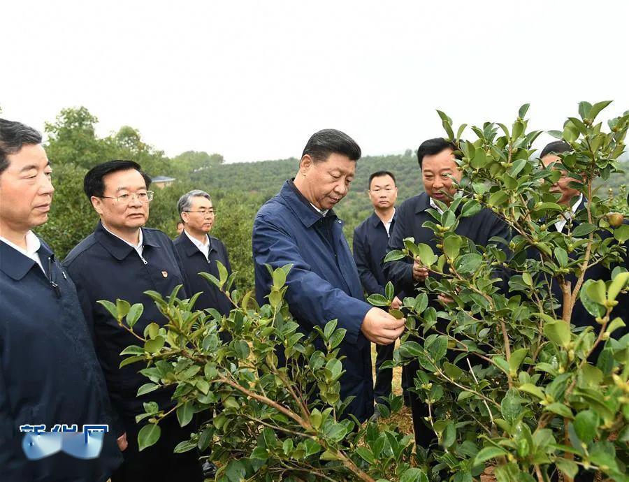 2019年9月,来到大别山片区的河南光山县司马光油茶园,习近平看到当地通过发展油茶种植加工产业,贫困户摆脱了贫困,村民过上了好日子。