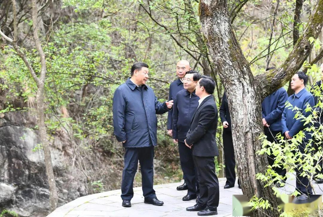 2020年4月20日,习近平总书记在陕西考察调研。当天下午,他首先来到位于商洛市柞水县的秦岭牛背梁国家级自然保护区,考察秦岭生态保护情况。之后前往小岭镇金米村,了解脱贫攻坚工作情况(图片来源:人民日报微信公众号)