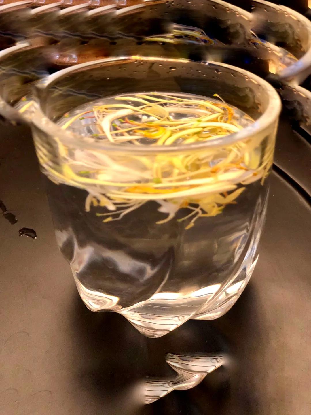 我如往年一样,小心翼翼地摘下几朵放入杯中,任金银花在清亮的水中嬉戏、翻闹,累了漂浮在水面,阵阵清香扑鼻而来,品一口满满的爱,像极了初恋。