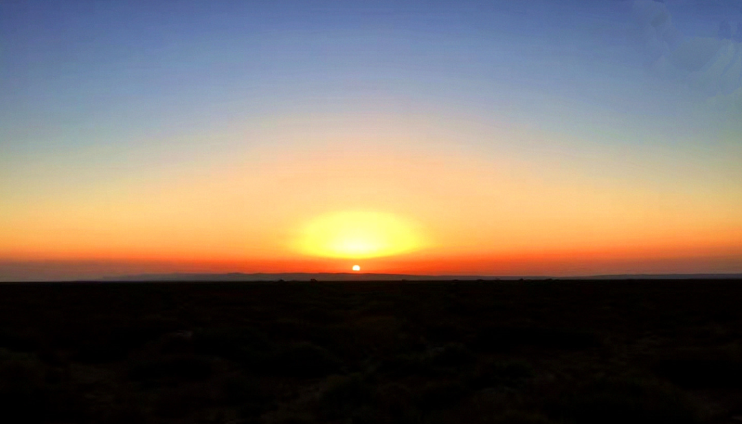 继续南行中,车内再度响起了《橄榄树》——那悠扬柔美的歌声,那茂密可爱的橄榄树,青翠椰枣树,还有那高挑的仙人掌绿篱缀满诱人的红色鲜果,都一一牢记在心,难以忘怀。渐渐地,我们一行进入了浩瀚的大戈壁,绿色的植物减少了,一丛丛耐旱的植被则不时出现了……