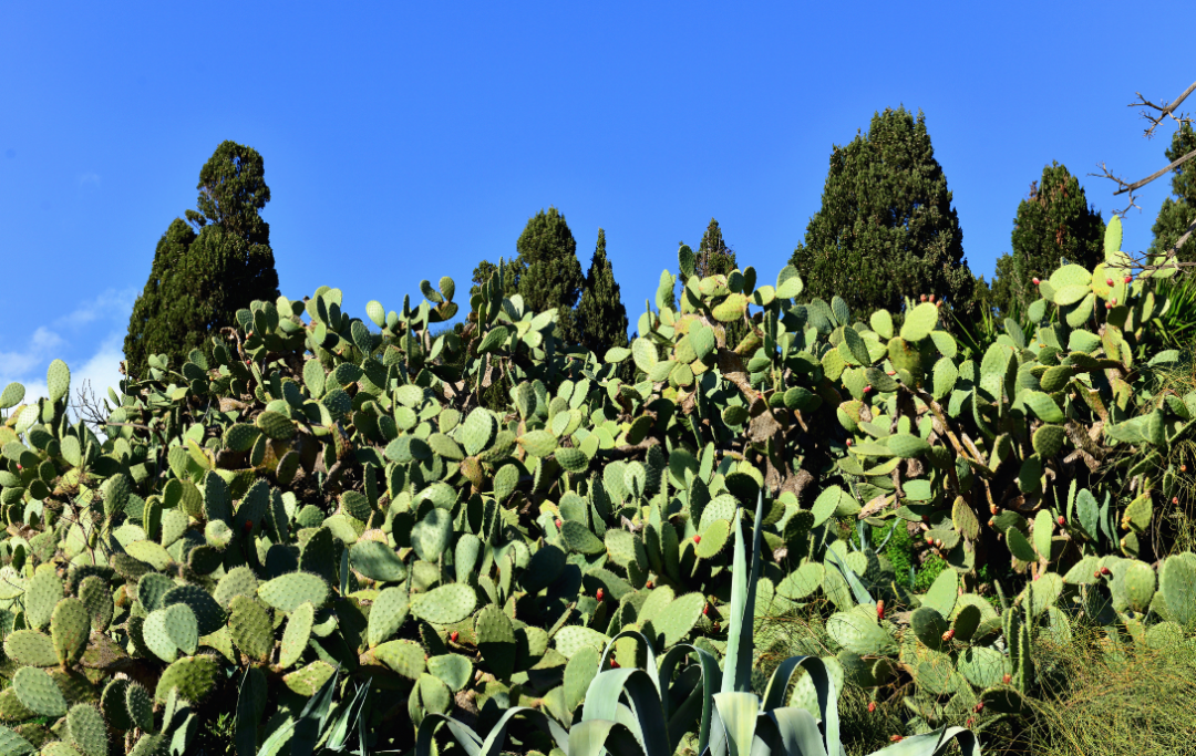 经过两个多小时的行车,透过明净的车窗,我们的视野更加平坦开阔。不一会儿,笔直宽阔的公路两旁,绿色植物逐渐增多。首先印入眼帘的,是高过人头的巨型仙人掌苍翠欲滴,含笑夹道喜迎嘉宾似的。再往远看,一丛丛、一片片的绿色树林仿佛巨伞布阵。这时,美女导游小肖播放起了柔美悠扬的歌曲《橄榄树》。“哇!!是橄榄树!”同行的初三小美女炀炀一阵惊呼。