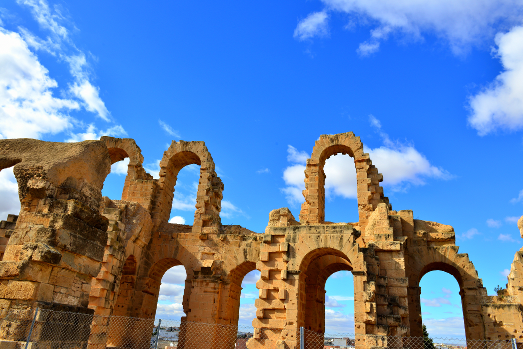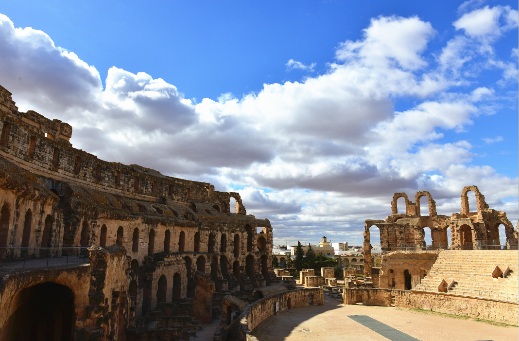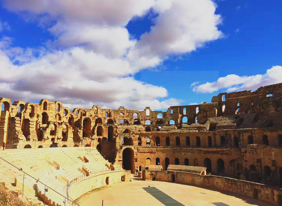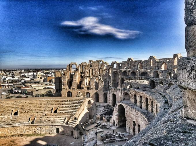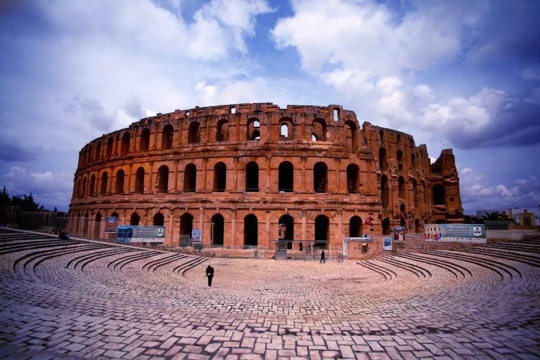 据史料记载:起初,古罗马也只是意大利的一个城邦;后来,罗马开始向外扩张,到了公元前二世纪,已逐渐发展成地跨欧、亚、非三洲一个非常强大的奴隶制帝国。据曾在中国留学和工作6年的当地研究生导游阿信先生介绍:原来,自公元前146年到公元439年,古罗马帝国统治了突尼斯近600年。同时,也将欧洲文明带到了北非突尼斯。埃尔·杰姆斗兽场建造于公元三世纪初,成为古罗马帝国在非洲留下的一座著名的辉煌建筑。对此,法国著名作家莫泊桑、福楼拜等都专程到此观光,并称赞为“世界美妙绝伦的斗兽场”“罗马帝国在非洲存在的标志和象征”。