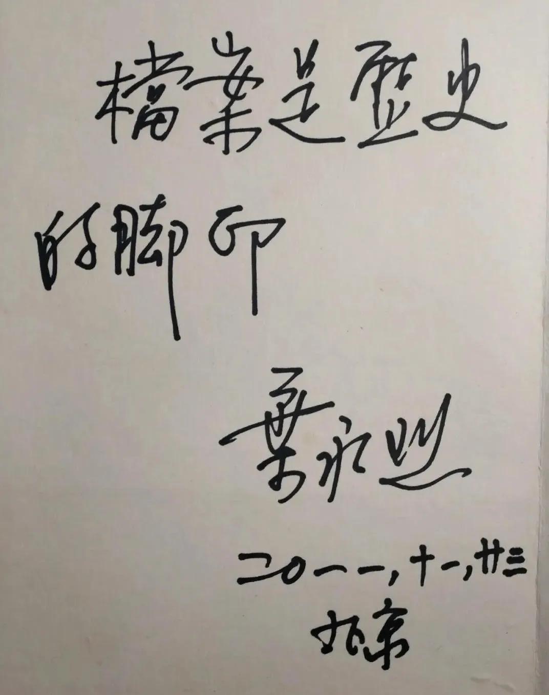 叶永烈写给作者的话:档案是历史的脚印(来源:中国艺术报)