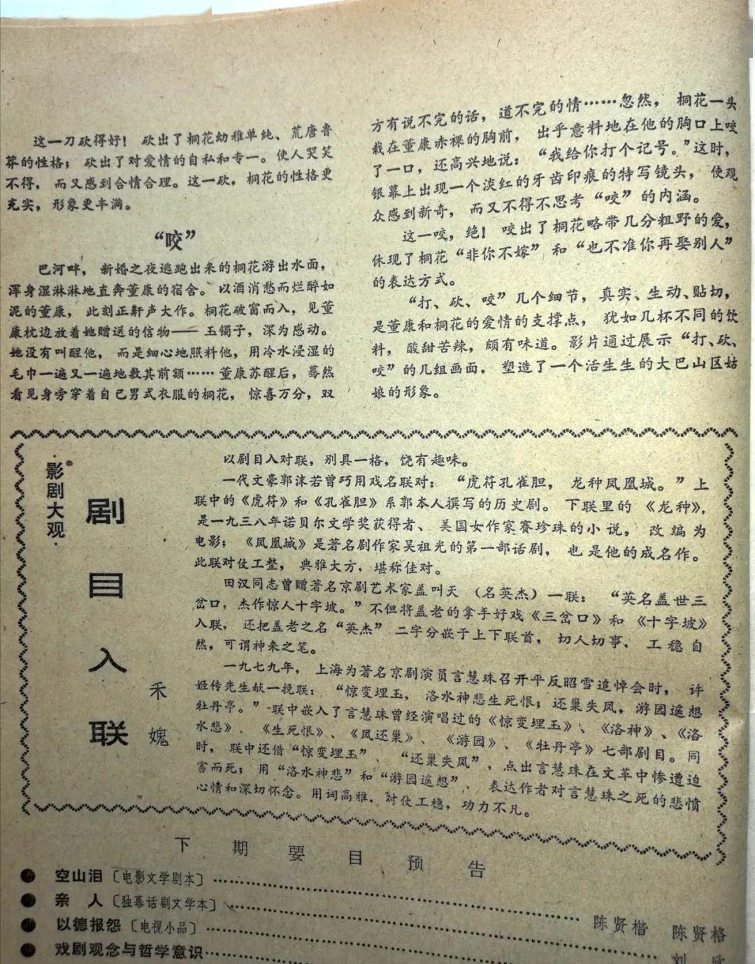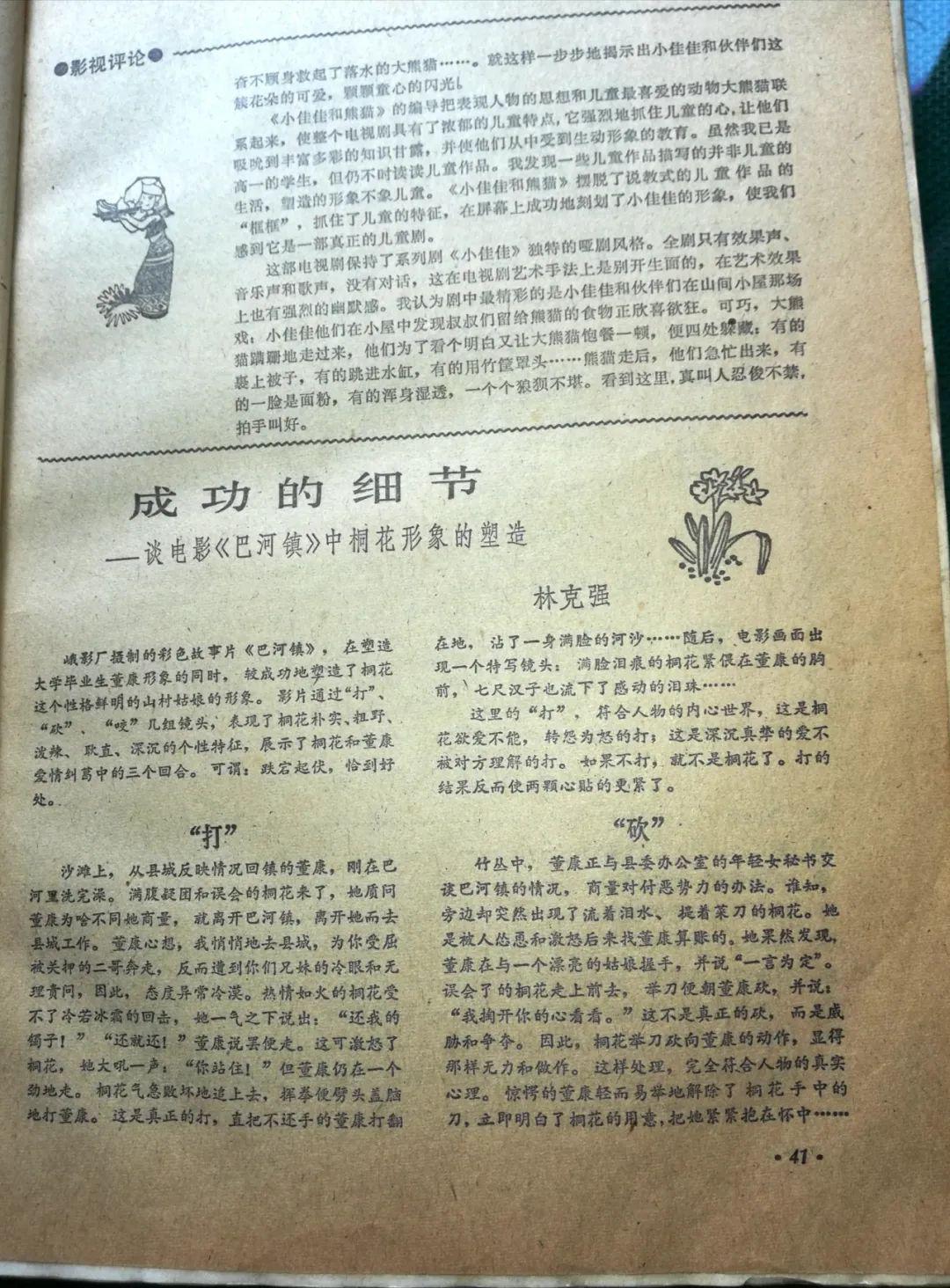 今日有闲,翻阅习作剪贴,在当年四川公开发行的《戏剧与电影》杂志上,看见我撰写的一篇电影评论《成功的细节——谈电影〈巴河镇〉中桐花形象的塑造》,引起回忆一段欣慰的往事。