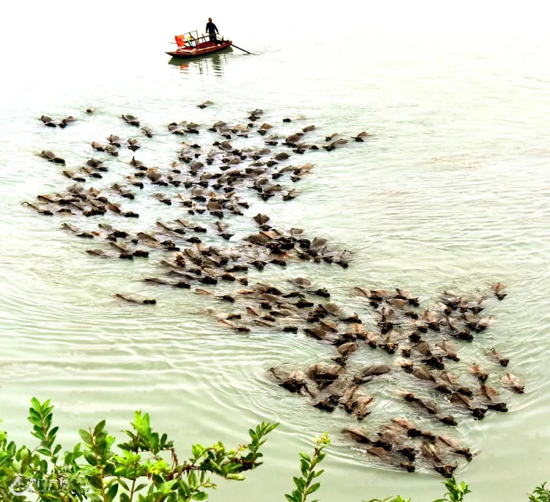 嘉陵江上独特壮观的生态奇观——百牛渡江(图片来源:蓬安门户网)