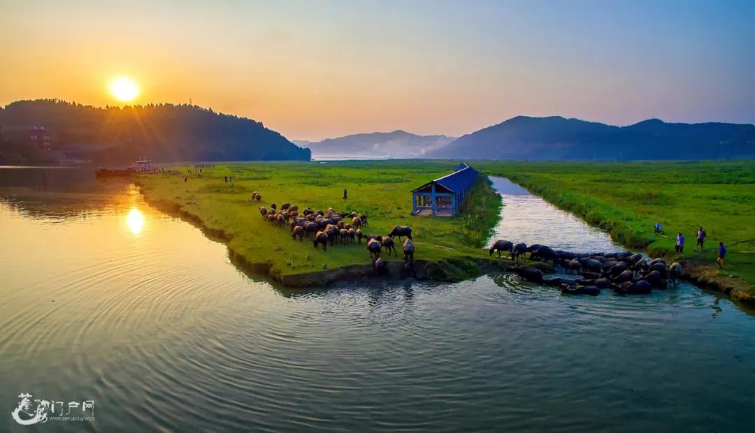 百牛渡江,四川蓬安境内嘉陵江上一道罕见的生态奇观。