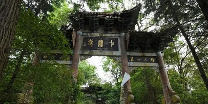 在七宝寺,风光如画的西河划了一个S型的大弯,藏珠山便有了三面环水,一面临崖的雄奇。在山水相依,树木葱郁的幽雅环境之中,有一大片明清建筑雄踞林木深处,一座始建于明朝的牌坊耸立在长长的石阶尽头。七宝寺由牌坊山门、前殿、大殿、文昌楼、奎星楼、南池书院以及廊庑组成,随山势而起伏,为四合院式殿堂,占地面积约3000平方米。