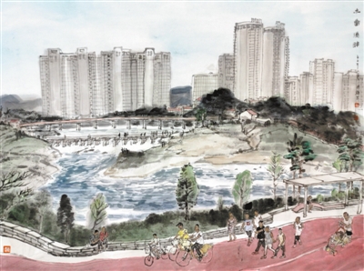 人民日报社文艺部与中央文史研究馆书画院合作,组织邀约美术工作者运用笔墨丹青,聚焦城市河流,展现沿岸新景,描绘美好生活,为欣欣向荣的美丽中国加油鼓劲!