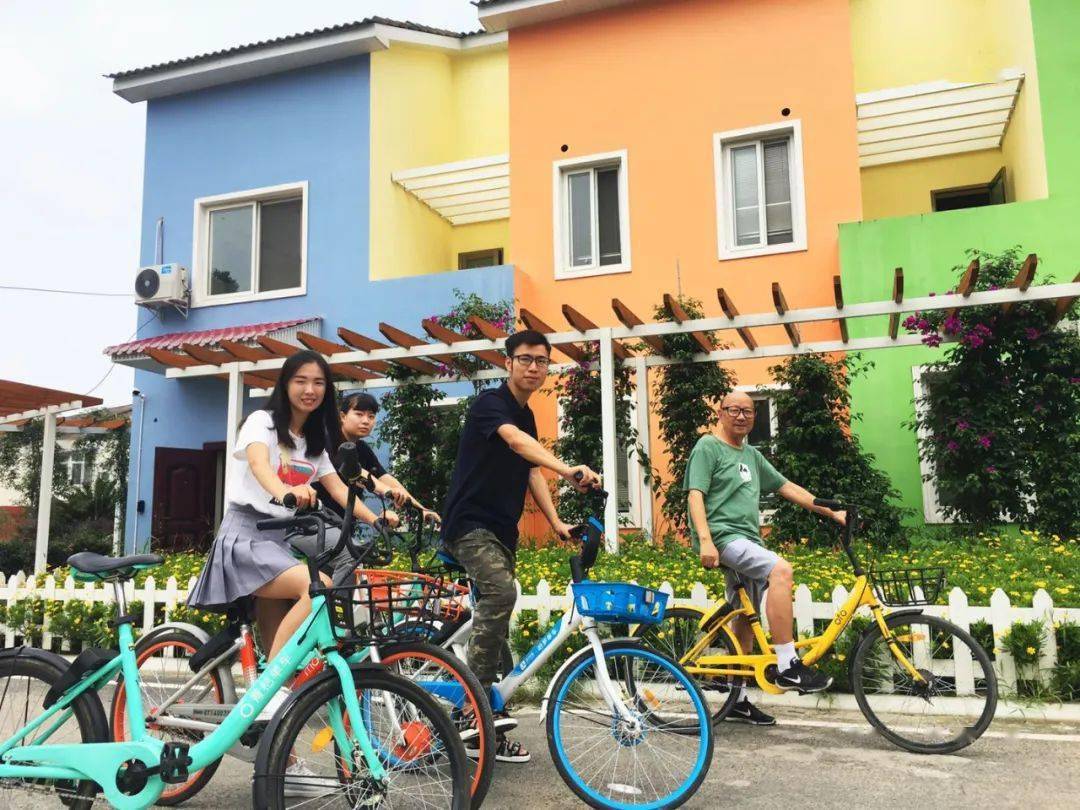 阿年(前)与弟子们骑车找灵感(梁雨青 供图)