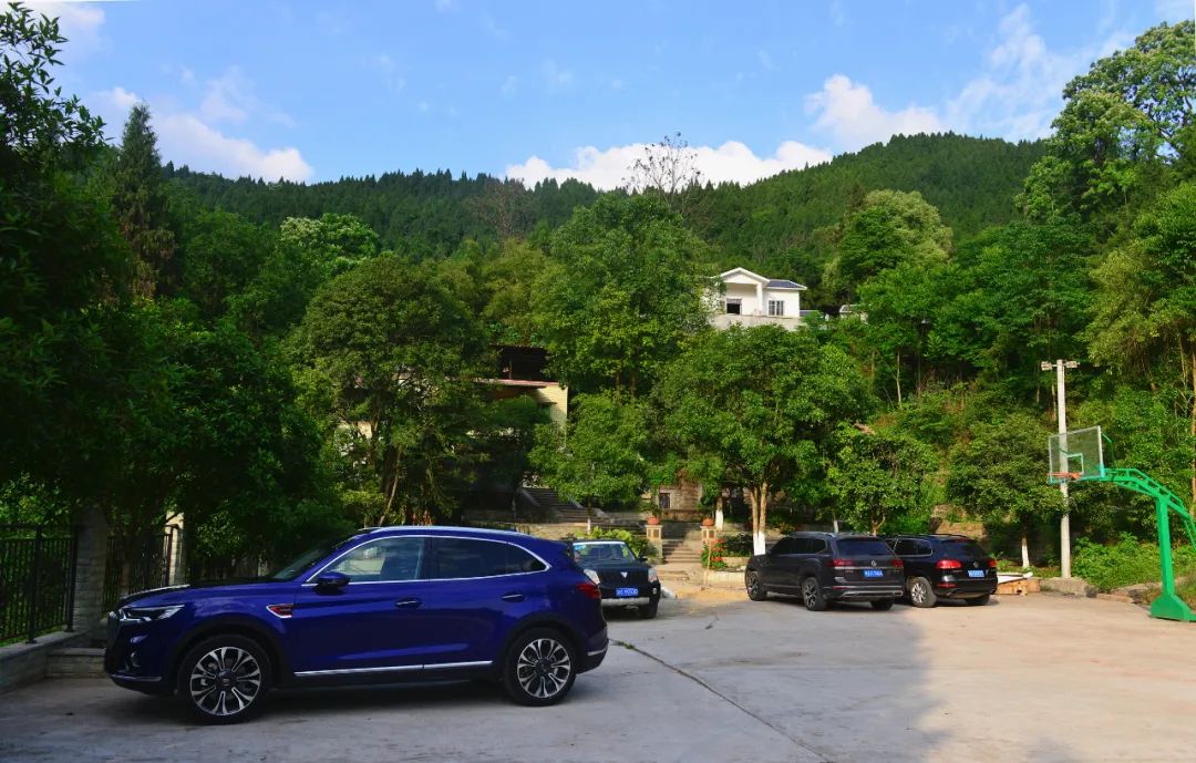 剑白的老家,正好坐落在湖湾深处。如今,森林耸秀、浓荫蔽日中掩映着新居,其院坝仅高出湖面约10米,宽阔、平坦的小广场,既有装了篮球架的运动场,又有花园、停车场。拾级而上,登临几十级石阶,便来到他的快乐老家——方家山庄。