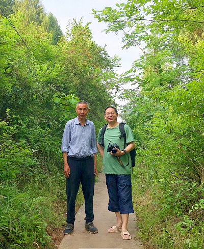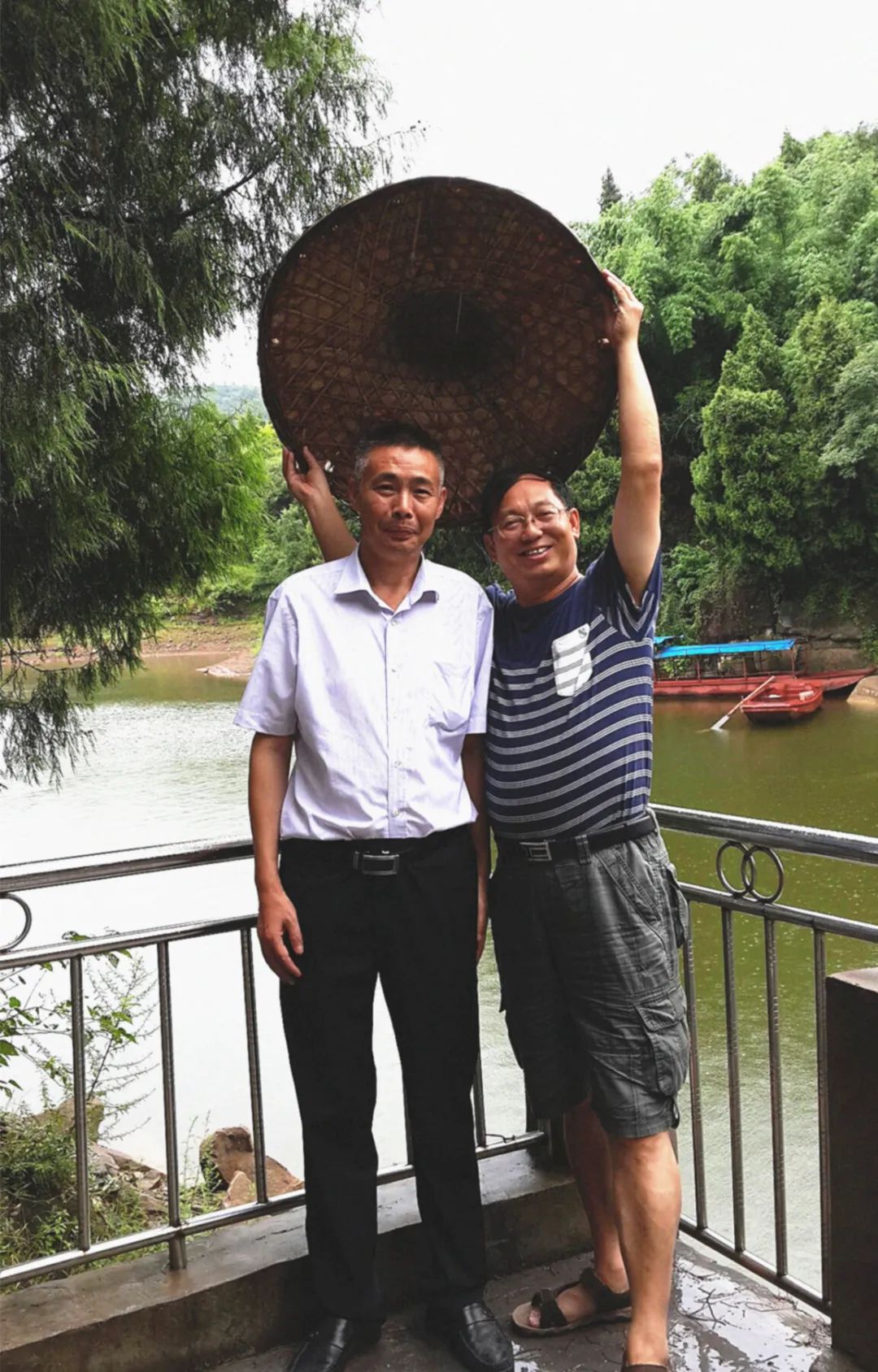 6年前,作者杨明强(右)在方家山庄清水湖畔与同窗方剑白合影(杨明强 供图)