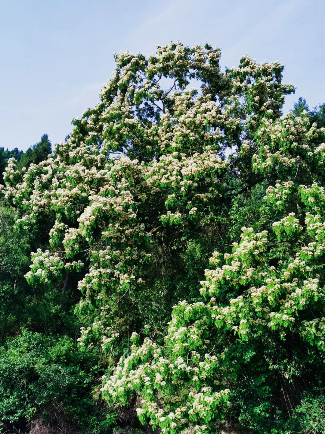 春末夏初的红五月里,我们在一个周末的下午抵达方家湾。从方家湾湖面乘船仰视,数十棵高大挺拔的山槐树万花竞放,洁白如云,纯然一色,点缀和装饰着何家梁下的方家湾,好一片冰清玉洁的繁花世界。反过来,方家湾的花海又点缀装饰着绿波荡漾的清水湖。