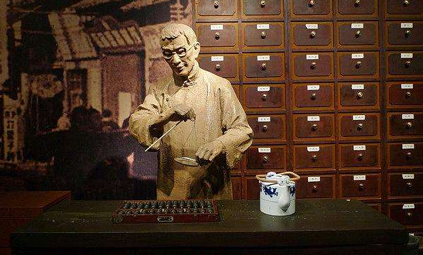 在中药铺前