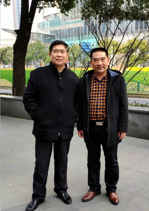 2019年3月,《流动的画廊》词曲作者孔鸿声、王富强在上海复旦大学(作者 供图)