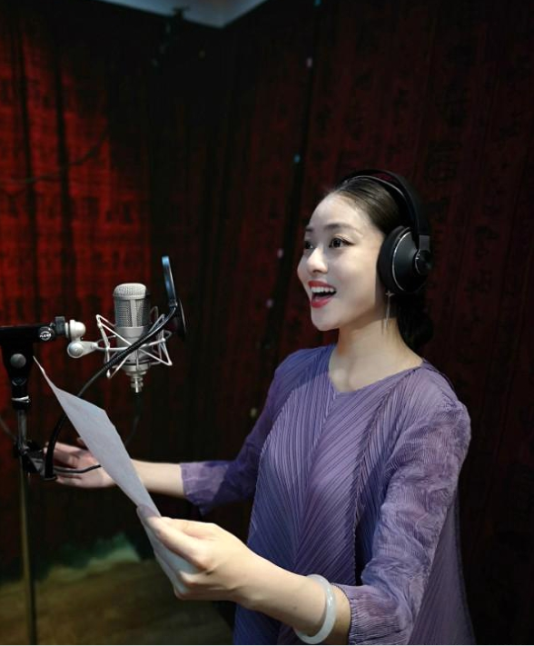 王妮娜在正在录音棚录制《流动的画廊》(作者 供图)