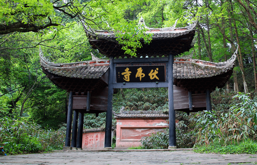 我每年都要到峨眉半山七里坪住上几个月,去山里散步的机会很多。从报国寺往西行约一公里,就是峨眉山最大寺院之一的伏虎寺。寺庙始建于晋代(一说唐代),当时称为“药师殿”,后因山形如卧虎,加之曾经老虎出没,遂将寺定名为“伏虎寺”。也许因为独特的山林气候,从暮春到初秋,在伏虎寺的四周花枝、草丛、曲径间,甚至是殿堂之内,往往会看到枯叶蝶随风摇摆。枯叶蝶身长3厘米,展开双翅有8厘米左右,它们喜欢单独长途飞行,从不见成群结队。时飞时息,采食花蜜或树液,一旦遇有敌情,立刻疾速地飞落在树枝上或草丛,伪装成枯叶。依靠这种特殊的自卫能力,枯叶蝶在峨眉山代代相传。